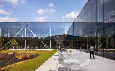 Like ZEISS products, the design of this facility is taut and precise. Its sleek silhouette is reflective of the company's strong, collaborative workforce and brand identity, and provides the exacting conditions needed to test and operate ZEISS equipment. Organizational leadership and employees echo the positive impact that the following have had on health and wellbeing: