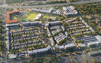 It addresses the need for attainable housing with a mix of affordable and market-rate housing types, including townhouses, duplexes, multi-family units, single-family homes and senior living. A central community park becomes the centerpiece of civic resources such as a community center, a workforce training center, and a new satellite campus for the College of Southern Nevada.