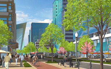Six new neighborhoods are envisioned, featuring a dense and dynamic mix of uses with high-quality parks and public spaces, and an enhanced multi-modal transportation network with a refined grid of complete streets.