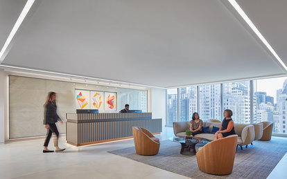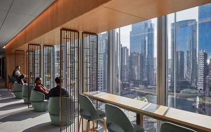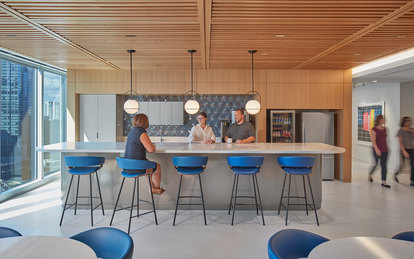 The renewed workplace transforms a dated interior into an inclusive and inspirational space that draws its staff together. The “living design” prioritizes the firm’s values of wellness and equality, providing a diverse and equitable array of workspaces and collaborative areas in a pleasing, light-filled space with remarkable city views.