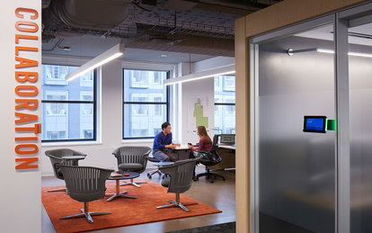 The result is a flexible, free-address office which allows employees to select the space and typology that best suits various individual tasks, teamwork and collaboration. Employees may choose from sit-to-stand desks, bench-style workstations with movable pin-up ideation boards, conference and huddle rooms and inviting nooks with great city views.