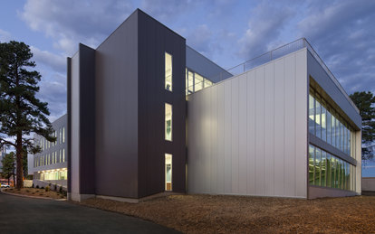 这栋三层楼的建筑位于NAU校园边缘一处棘手的树林覆盖的狭窄场地上。它整合了此前分散在大学场地内的多个行政办公功能。通过将建筑物的核心推到大楼的外缘,可提供无立柱的楼面设计,从而最大限度地提高建筑的灵活性和功能性。