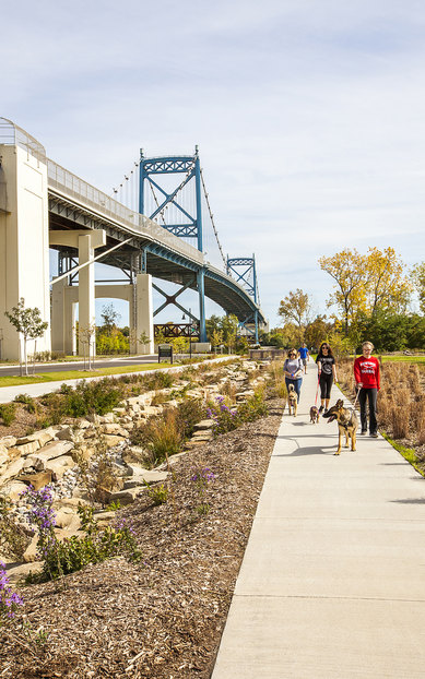 Site amenities include trails, recreational greenspace, picnic grounds, a dog park, interpretative exhibits and a new protected cove launch giving kayakers and paddlers safe access to the Maumee River. This dynamic and attractive waterfront park will generate new momentum for Toledo’s riverfront. It provides a seamless connection between the city and its river, drawing visitors and spurring redevelopment in what promises to become a prime downtown destination.
